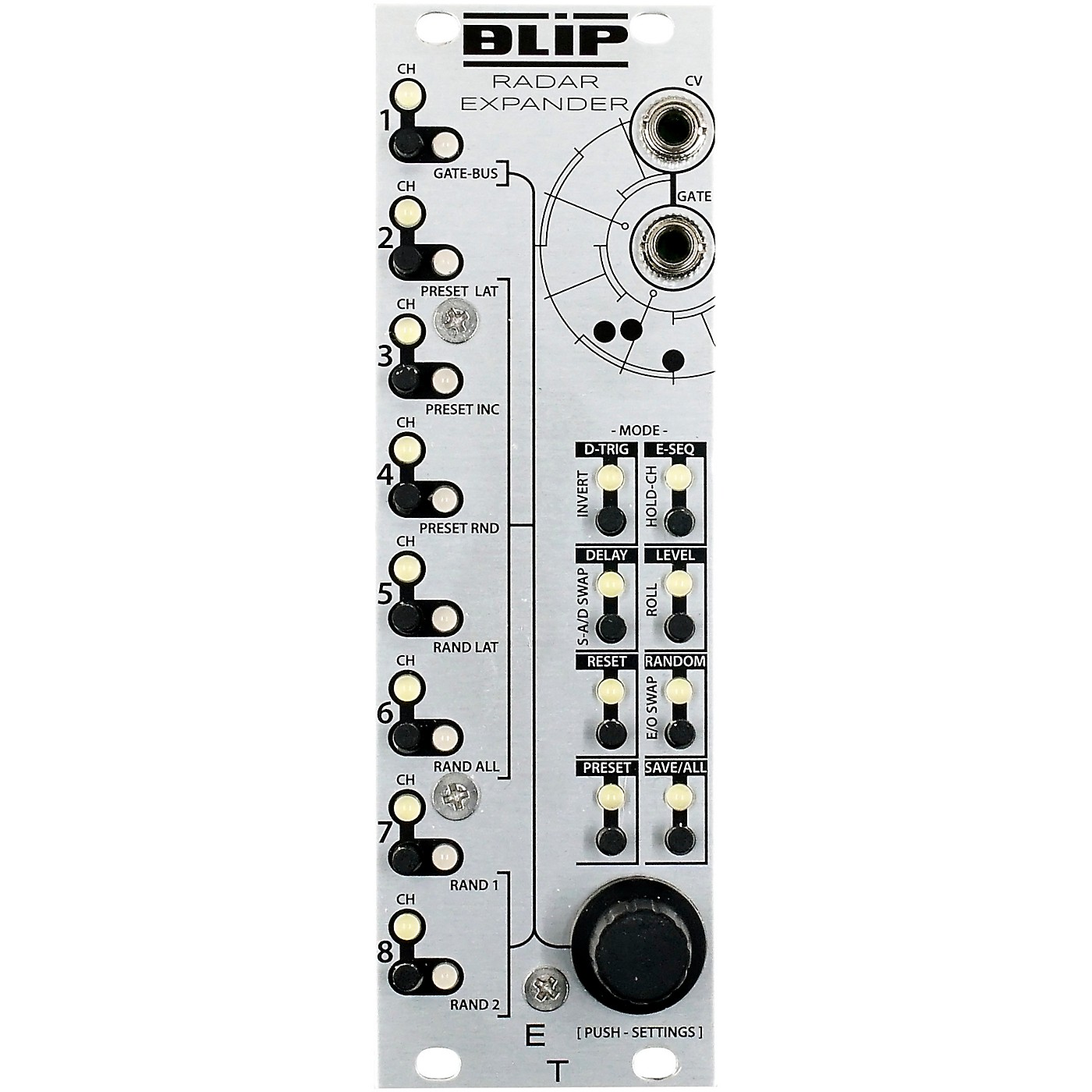 BLIP is an expander module for the RADAR 8-way AD/AR envelope/LFO generator that adds a variety of additional functionality.