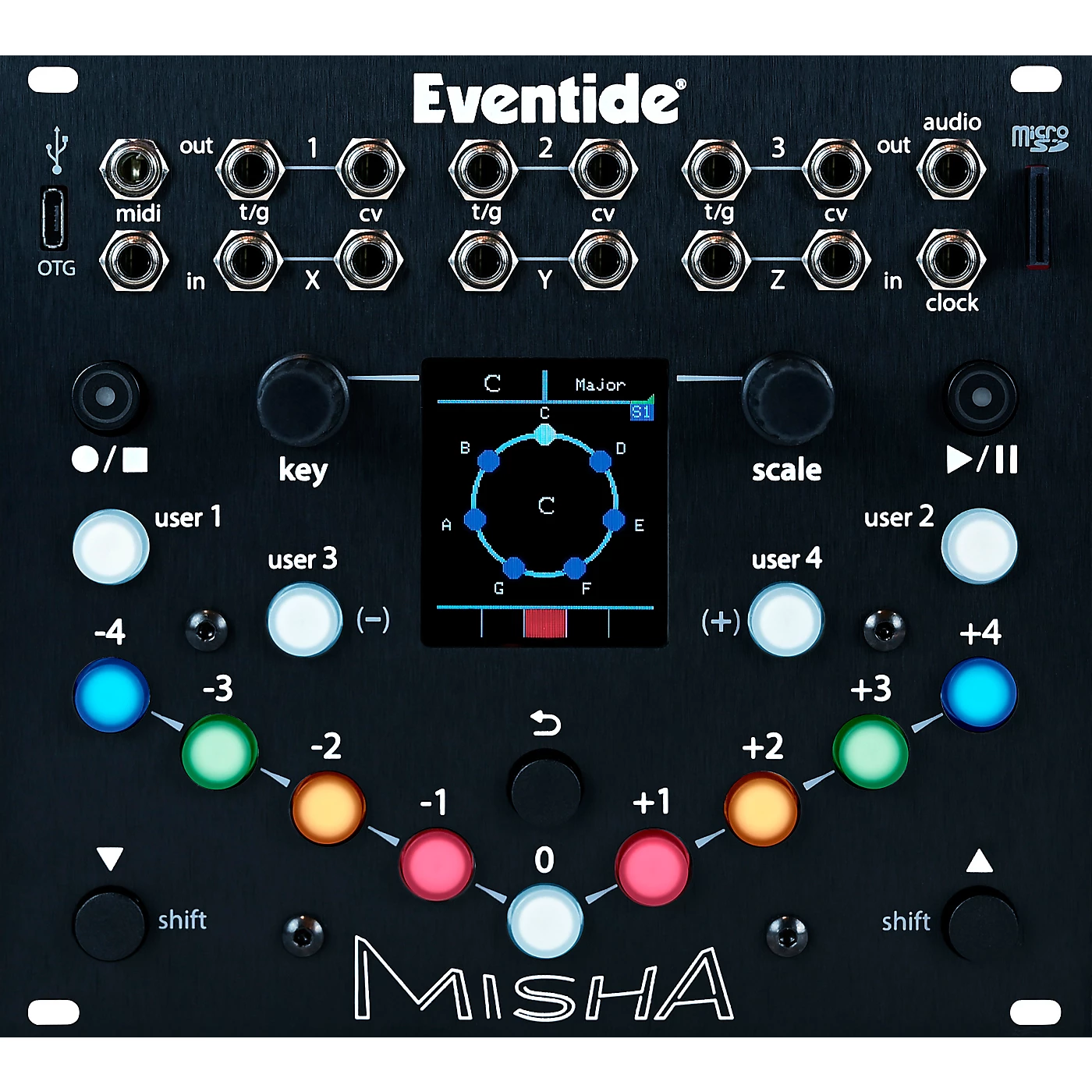 Misha from Eventide is an innovative Eurorack instrument/sequencer module that utilizes a unique, interval-based approach to playing and creating melodies. It’s designed to be played like a keyboard instrument, yet makes music in a way unlike any instrument before. In addition to playing it live, you can also record sequences that can be modified in a multitude of ways, allowing for new paths of spontaneous creativity.
