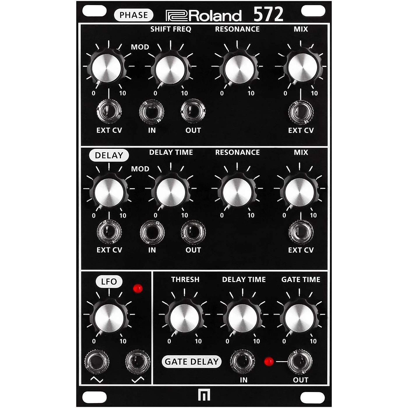 The 572 Phase Shifter, Delay and LFO is a time-based, multi-effects module. The 572 includes a five-stage phase shifter, analog audio delay, a control voltage gate delay, and an LFO. The phase shifter has panel controls for shift frequency and resonance amount that can vary from subtle to a deep, lush analog effect. Similarly, the audio delay has independent knob control of delay time and resonance (or feedback) for short chorus-like modulation delays. Both the phase shifter and delay can be modulated by the 572’s internal LFO or external CV signals and feature wet/dry effects mix controllable via the front panel or with CV.The LFO section has a knob for controlling frequency and features both normal and inverted output jacks. The gate delay has knobs to control threshold, delay time, and gate time for modifying incoming gate signals from other modules.SYSTEM-500 Based on the classic SYSTEM-100m modular synthesizer, the SYSTEM-500 is a fully analog recreation of one of the most revered electronic instruments of all time. Newly designed in Eurorack format, the SYSTEM-500 delivers the classic character and functionality of the original with the advantages of a modern instrument. Built in the USA and assembled in Japan, the SYSTEM-500 is made to exacting standards with top-quality components and solid controls. And it’s surprisingly affordable, turning the fantasy of finally owning this legendary instrument into reality.Classic System, New FormatThe SYSTEM-500 consists of Eurorack format modules that you can mix and match in any combination to create the ultimate Roland modular synthesizer. Each module is completely analog and has been designed for maximum compatibility with the world of contemporary synthesizer and effects modules. The SYSTEM-500 is a compact, powerful system that opens up vast possibilities for sound design and musical exploration.