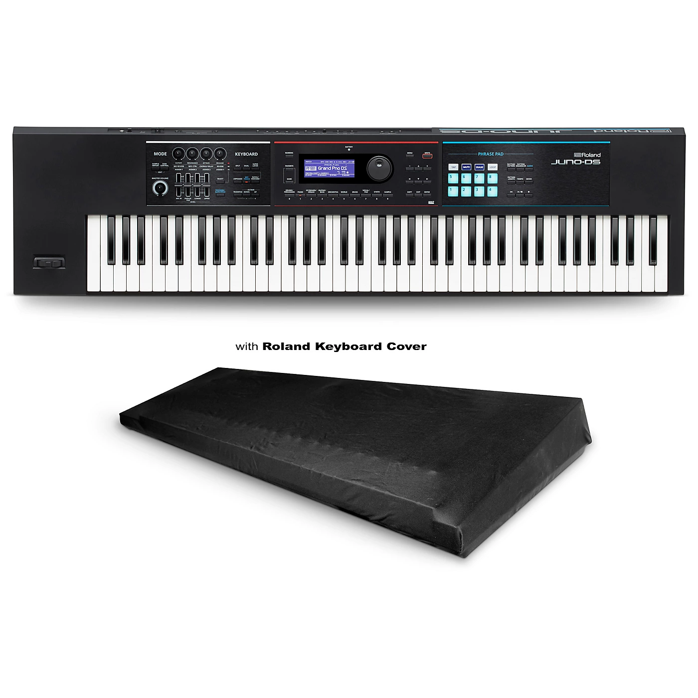 This is the perfect 2-piece set to keep your new JUNO-DS76 synth looking like new. Whenever you aren’t playing, slip on the keyboard dust cover to ensure your synthesizer stays clean.Roland JUNO-DS76 SynthesizerThe Roland JUNO-DS76 is the portable modern synth that can keep up with your busy band life. Lightweight, compact and powerful, this 76-note instrument is always ready to go, with easy operation and instant access to pro onboard sounds that let you create or perform music anywhere, from studio to stage. And with its extended-range keyboard, the JUNO-DS76 is ideally suited for playing advanced arrangements with multiple sounds split across the keys. The JUNO-DS76 is equipped with a huge variety of ready-to-play pro sounds for any genre. The keys are also a little longer than a standard synth keyboard, providing a playing feel that’s smooth and consistent no matter where you press a key.Roland Medium Stretch Keyboard Dust CoverThis Roland keyboard cover protects your instrument from dust and debris when it’s not being used. The stretchy nylon fabric and integrated drawstring ensure a secure fit. Ideal for studio musicians, stage performers, schools and more.